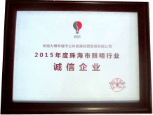 在表彰大會上,珠海大橫琴城市公共資源經營管理有限公司(以下簡稱“大橫琴城資公司”)榮獲珠海市照明行業協會頒發的“2015年度珠海市照明行業誠信企業”、“2015年度珠海市城市照明管理工作先進單位”等多項殊榮。另外,城資公司市政管理部負責人商寧、城市照明管養中心負責人孫威,獲得了2015年度珠海照明行業“杰出貢獻個人”獎。
