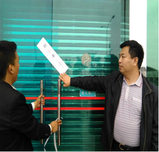3、管委會(huì)領(lǐng)導(dǎo)(張軍)在老口岸入境報(bào)關(guān)廳張貼封條