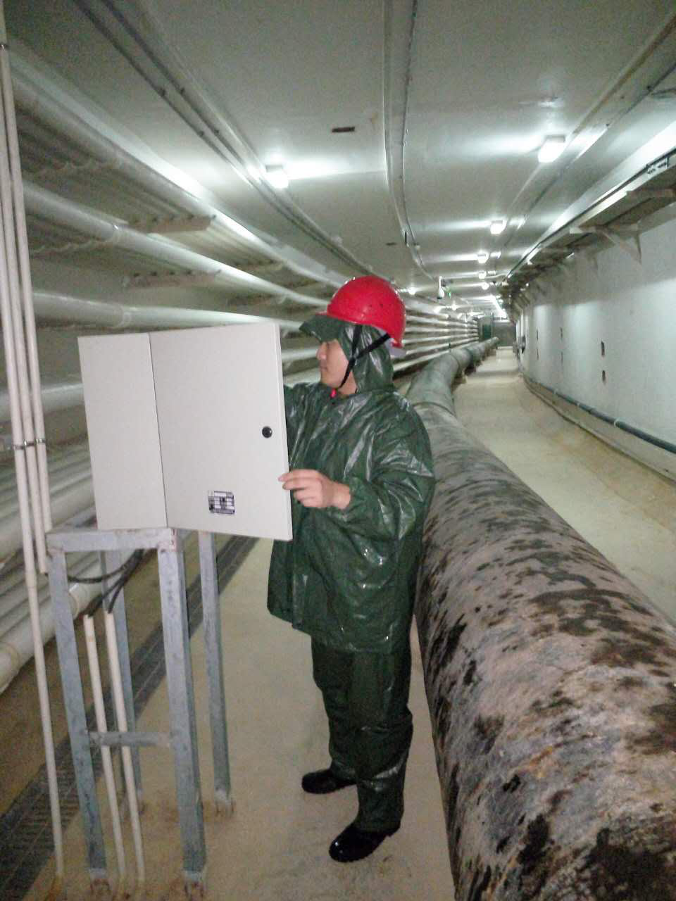 (我司維修電工在綜合管廊內(nèi)部巡查,地點:綜合管廊)
