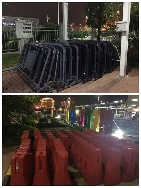 (為預(yù)防交通癱瘓準(zhǔn)備鐵馬和水馬,地點:橫琴口岸)
