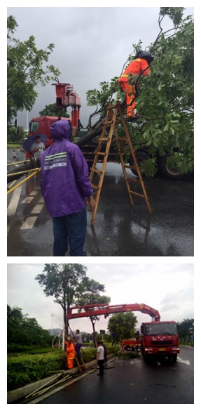 (對被臺風(fēng)刮倒的樹木進行扶正,保障路面安全)