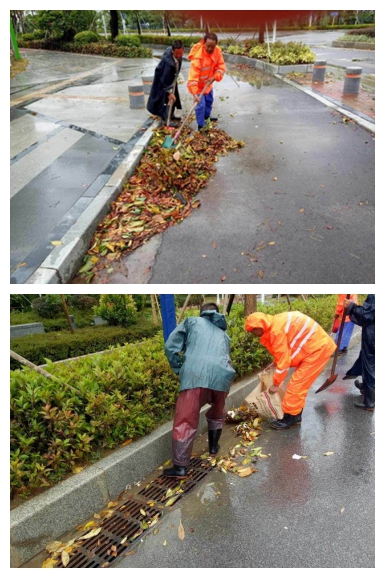(環(huán)衛(wèi)工人冒著風(fēng)雨,清理路面落葉,地點:橫琴大道)