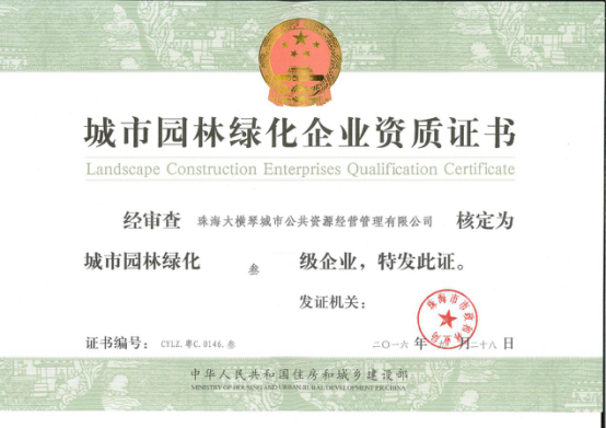 城市園林綠化三級資質證書的取得,使公司市政業務的開展邁上了一個新的臺階,是公司發展的新起點。公司將繼續圍繞“讓城市更精彩”的管理方針,不斷做大做強,繼續為橫琴新區的建設和發展作出更大的貢獻!