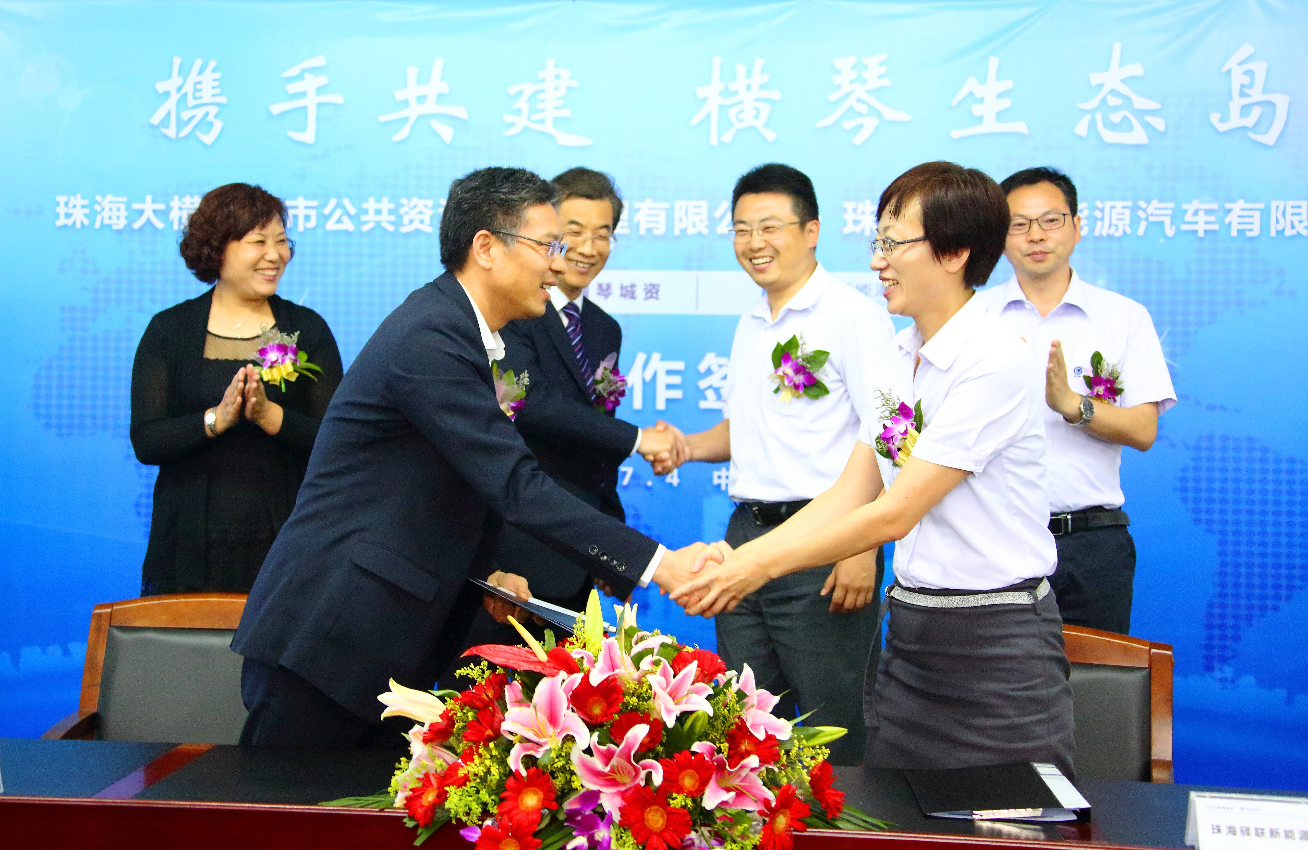 隨后,在田偉和陳昊的共同見證下,大橫琴城資公司總經理鄭進博先生與驛聯新能源總經理張靜華女士共同簽署戰略合作協議,宣告雙方合作正式達成。