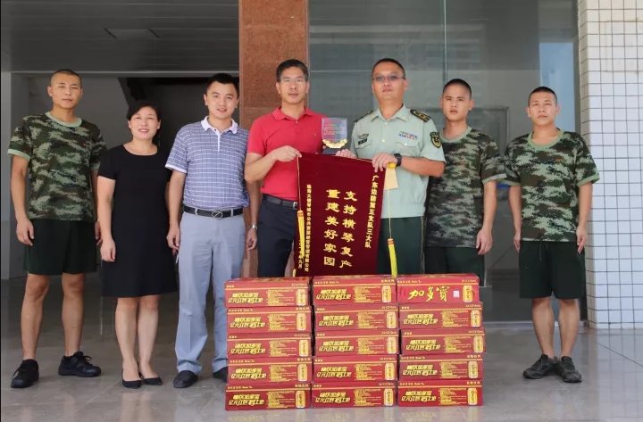慰問中,我司領導為子弟兵們送上感謝信、錦旗、感謝牌、清涼飲品等,并再次對子弟兵在搶險救災中做出的貢獻,致以崇高的敬意,對我司提供的援助,表示由衷的感謝。