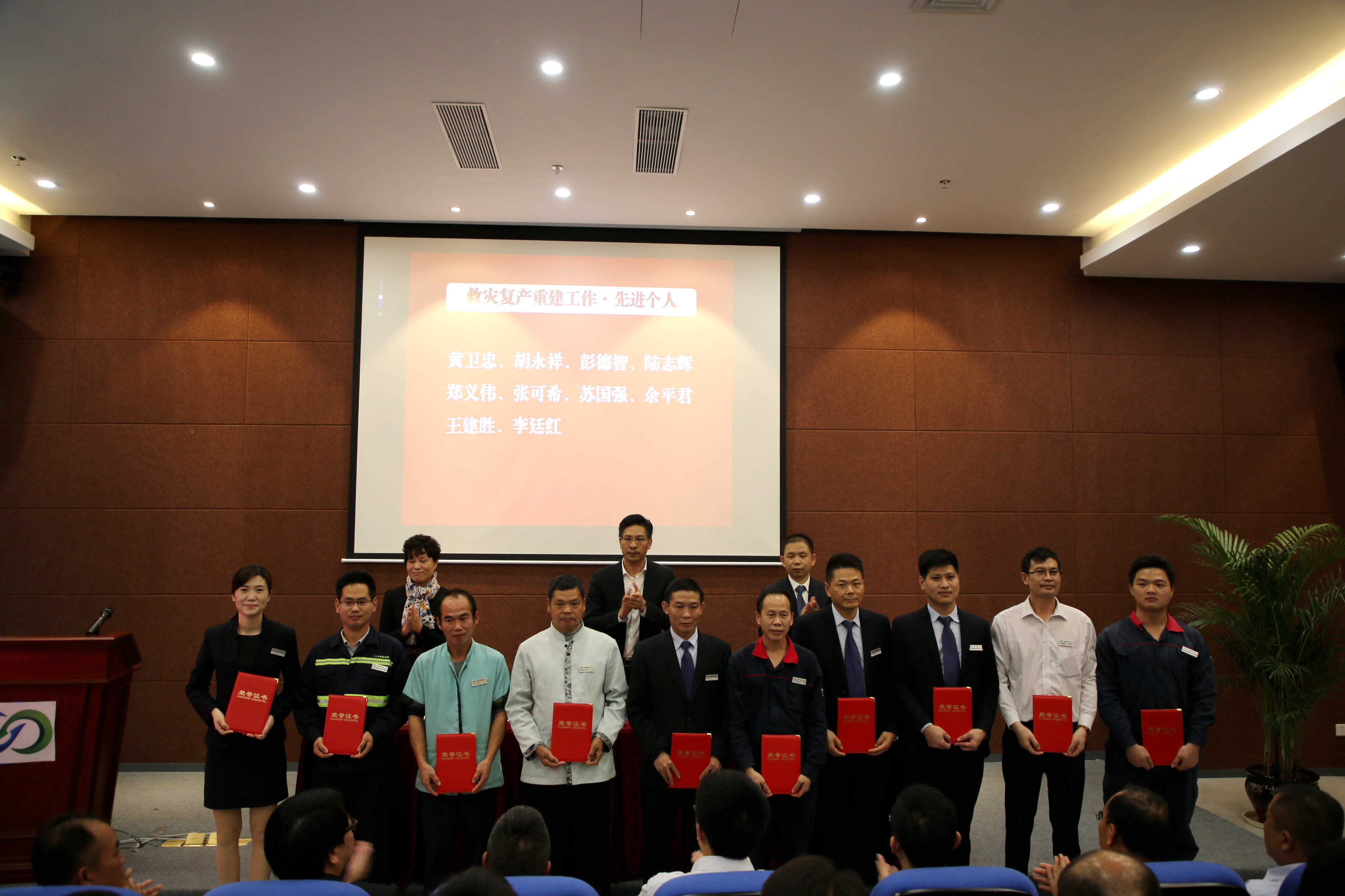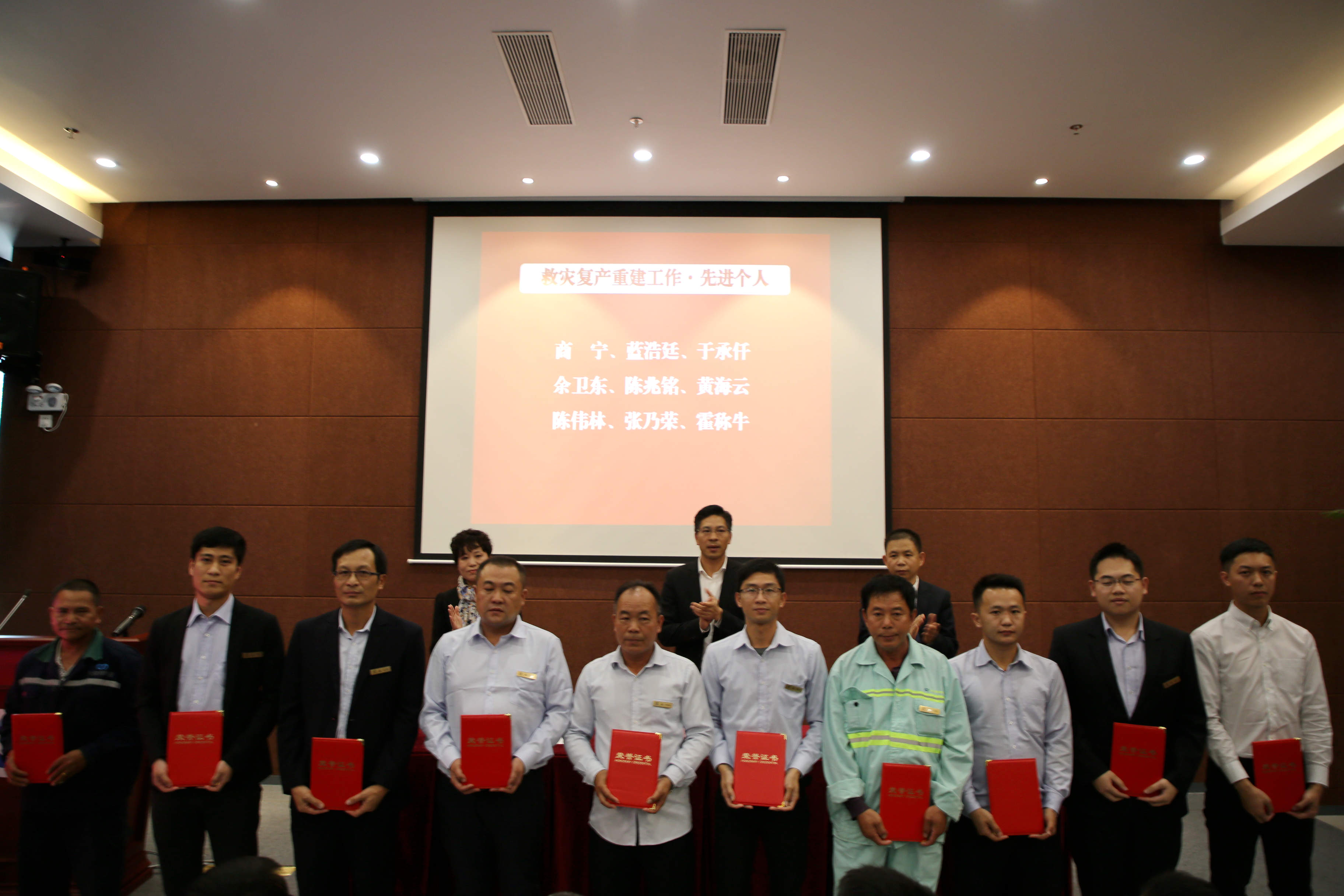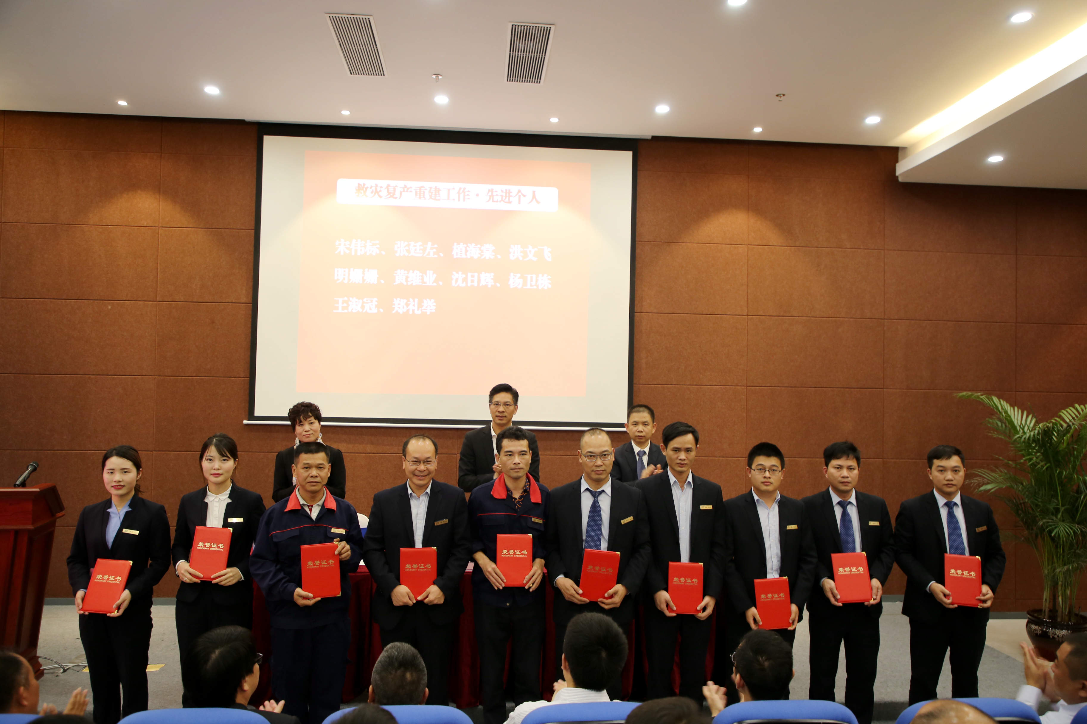 隨后大會對80名在救災(zāi)復產(chǎn)中沖鋒在前、表現(xiàn)突出的先進個人進行表彰。