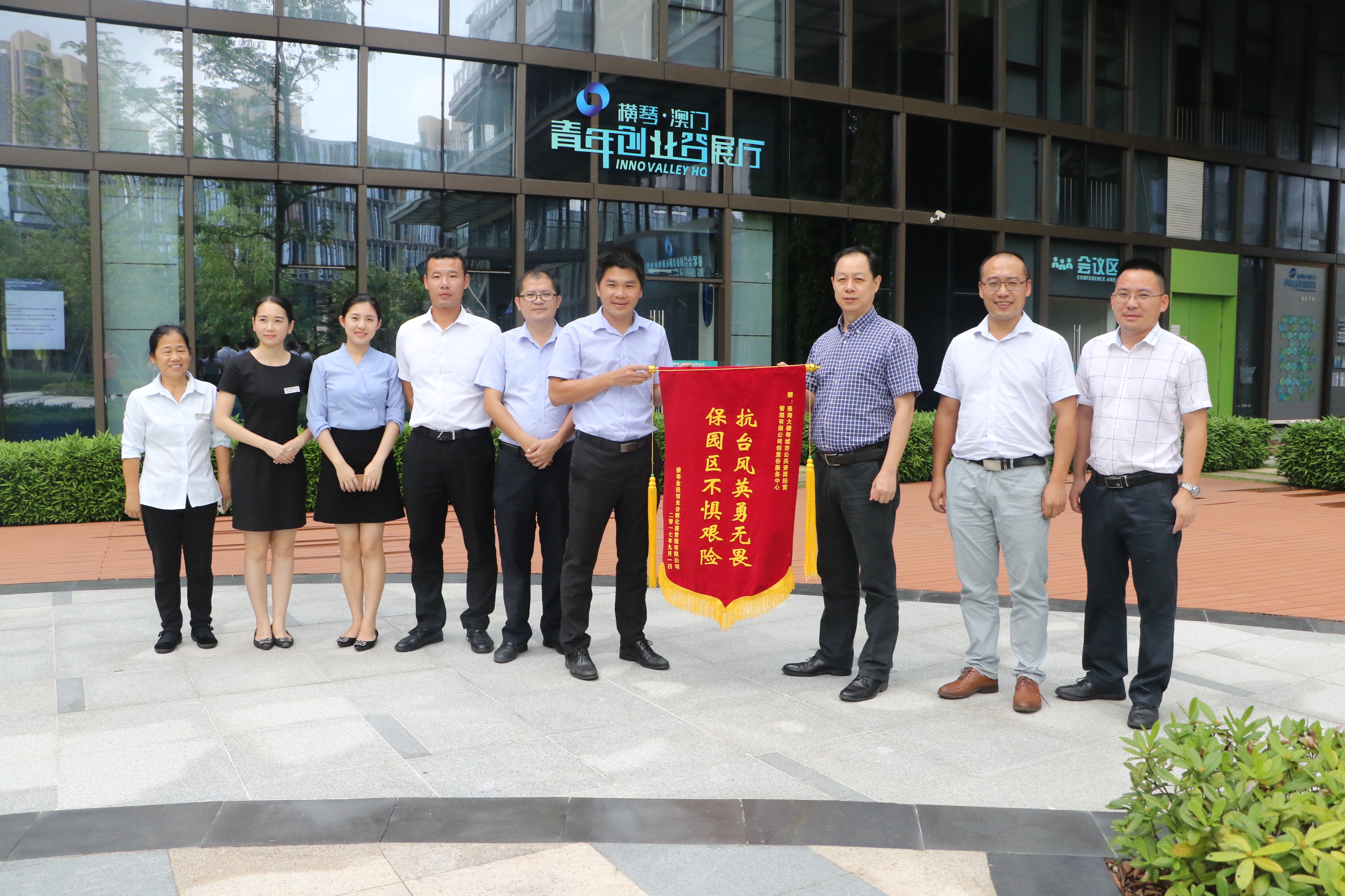 贈送的感謝錦旗:抗臺風英勇無畏,保園區(qū)不懼艱險