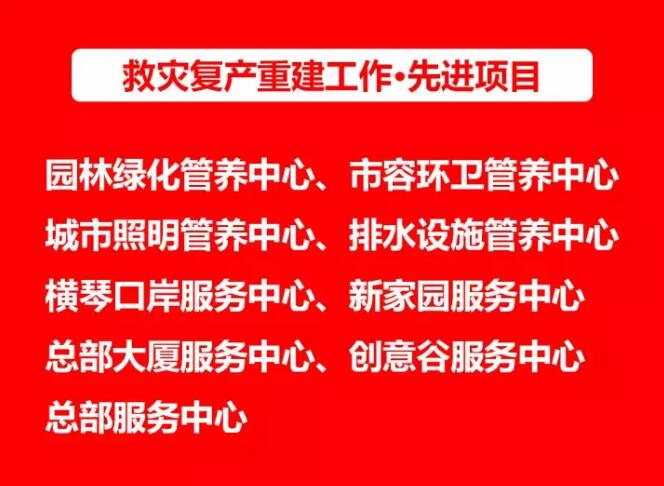同時需要特別指出的是大橫琴城資公司以頑強拼搏、不畏艱難的精神完成了一個又一個救災(zāi)復產(chǎn)的任務(wù),得到有關(guān)部門的認可,并收到多個單位的致信感謝和贈送錦旗。