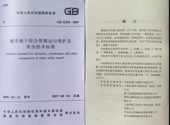 大橫琴管廊公司參與編制了由國家住建部、國家發(fā)改委、國標委等單位發(fā)布的綜合管廊運營管理相關(guān)的標準、指南、規(guī)范等。其中,參與編寫的《城市地下綜合管廊運行維護及安全技術(shù)標準》(GB 51354-2019)已經(jīng)發(fā)布并于今年8月1日正式實施。