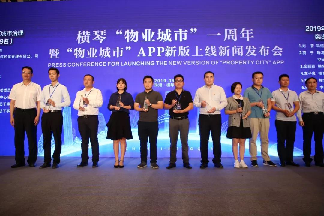 大橫琴城資空間部經理商寧(左三)榮獲“2019年度橫琴新區城市治理突出貢獻個人”