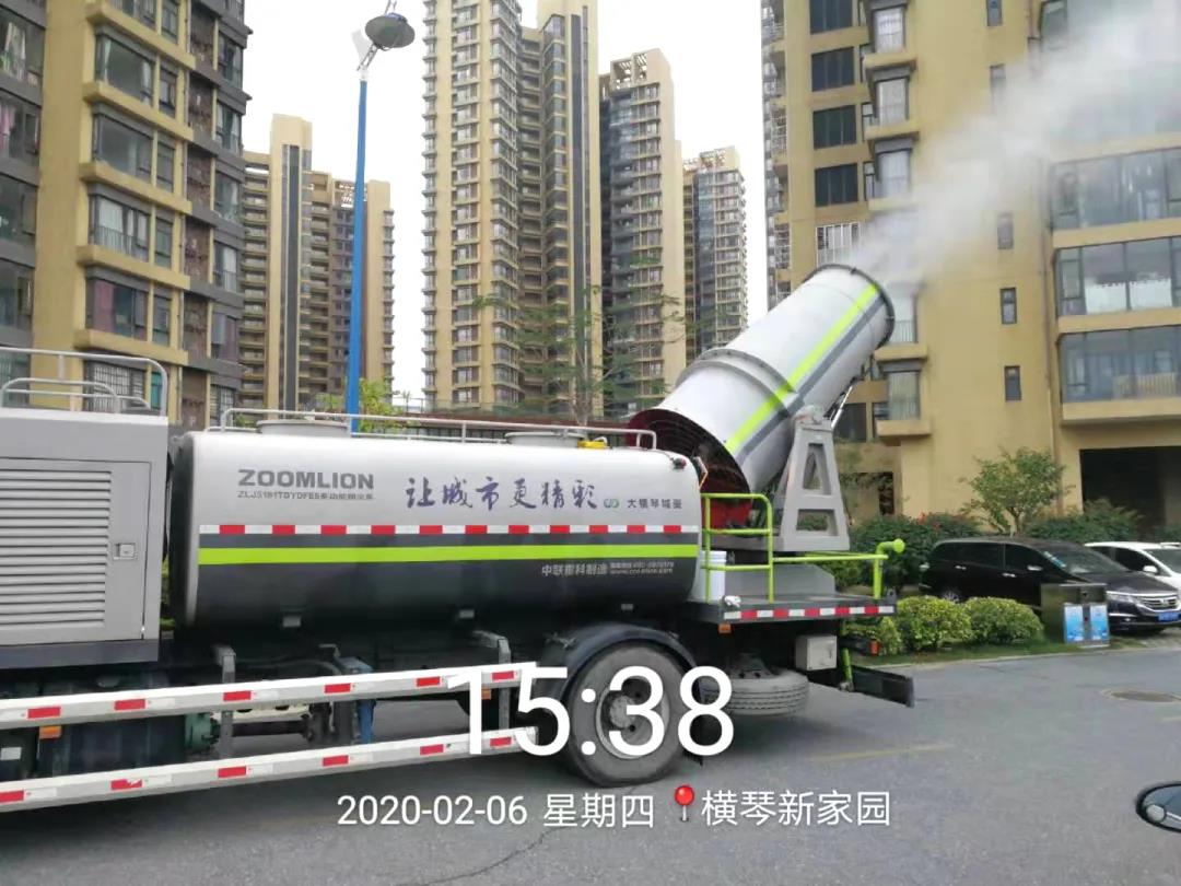大橫琴城資從2月2日起,為仍未正式復工的橫琴新區定點安置湖北同胞的隔離點支援綠化養護工作,隔日派出灑水車和工人到園區內澆灌綠植,為隔離安置點減輕人員負擔。