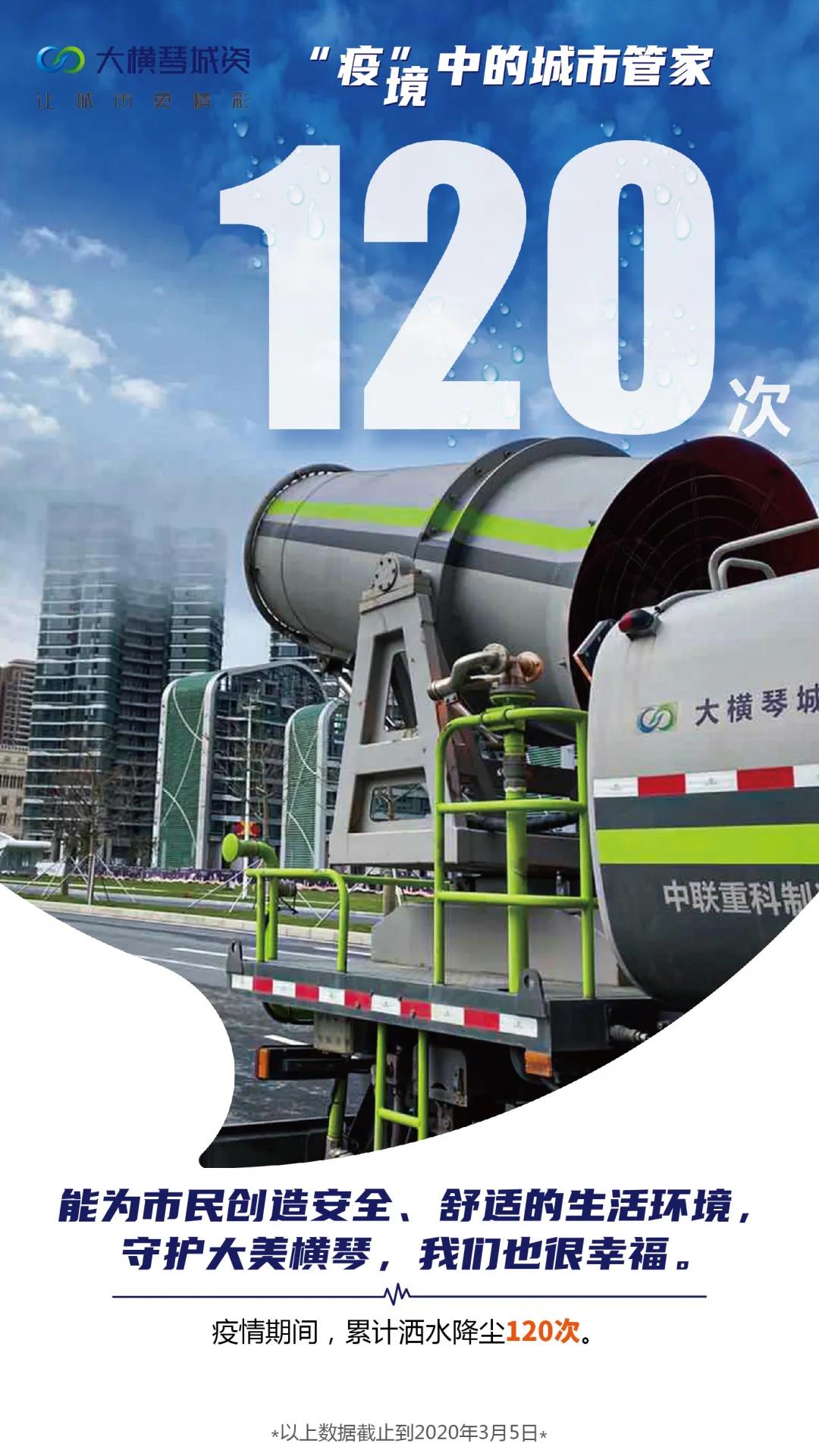 大橫琴城資運用多種方式積極宣傳防疫政策、知識,在9條自然村用“喇叭”循環播放普通話和粵語疫情防控宣傳,每天播放時間為09:00~17:00;在9條自然村發放疫情防控宣傳單約2100余份,粘貼宣傳海報60余張,宣傳橫幅60余條。在公司大型作業車輛和皮卡車車身上張貼防疫宣傳標語,累計50臺車、100張標語。
