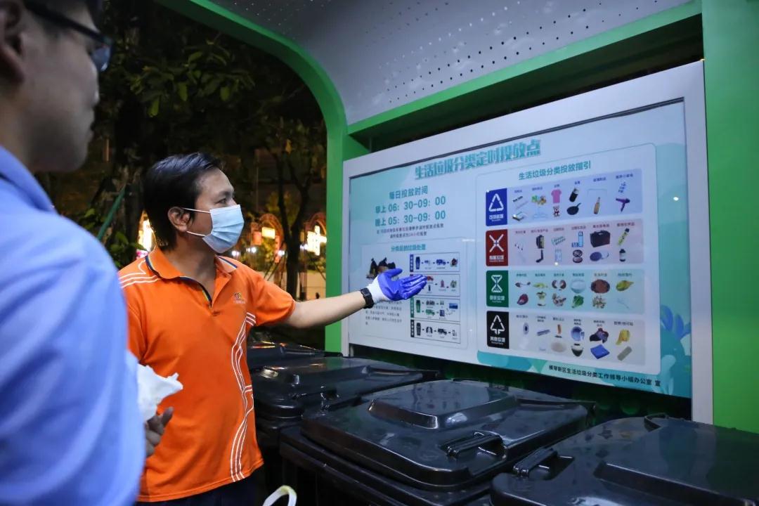 作為橫琴新區首個實行垃圾分類定時定點垃圾分類投放的示范村,為了讓居民認識到垃圾分類的意義和必要性,盡快適應定時定點投放,橫琴新區垃圾分類辦聯合石山村、大橫琴城資開展了一系列居民入戶垃圾分類宣傳工作和督導工作,讓居民充分了解投放垃圾的時間和地點——每日分為早上6時半至9時,晚上17時半至21時兩個時間段定時投放,固定投放點是位于村頭和雨水花園的環保垃圾屋。