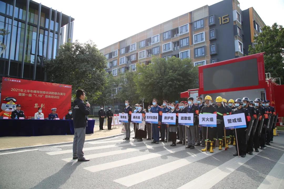 本次活動由大橫琴城資創(chuàng)意谷物業(yè)服務(wù)中心、珠海大橫琴發(fā)展有限公司、橫琴新區(qū)消防救援大隊(duì)、橫琴鎮(zhèn)新家園社區(qū)居民委員會、珠海市公安局橫琴派出所新家園社區(qū)和珠海澳大科技研究院聯(lián)合舉辦,共出動消防車4輛、消防宣傳車1輛、救護(hù)車1輛,共計20名消防指戰(zhàn)員、78名創(chuàng)意谷物業(yè)服務(wù)中心員工參加。