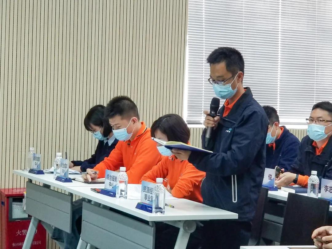 公司防疫領導小組組長、總經理李志強做總結發言,在要求“城資人”隨時做好“打硬仗、打贏仗”準備的同時,提醒大家“保護他人,保護城市,首先要保護好自己”。