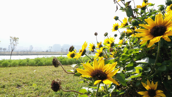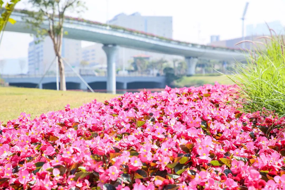 兩岸花團錦簇,綠意盎然