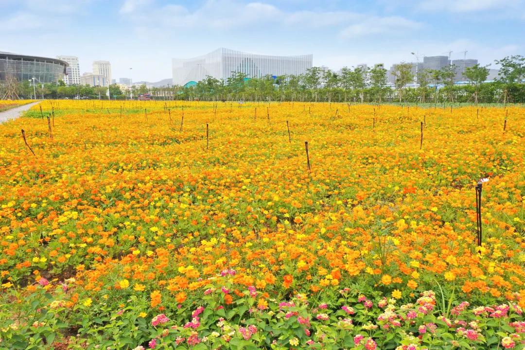 秉承“生態節約”的理念,大橫琴城資堅持通過自行撒種、育苗培植時花,再移植到花海區域。苗圃二期花海共種植了約一百萬株時花,其中約70%的時花來自橙子生態苗圃一期的自產時花,種養成本大大降低;通過季節性播種,每個季節的時花品種交替更新,有效保障了四季景觀更迭的花材需求。
