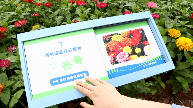 可以滑動的、標明花卉信息的指示牌