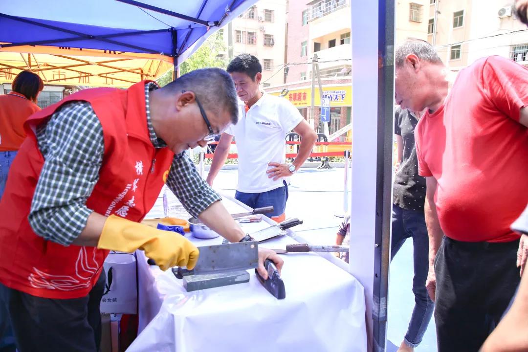 活動現場,大橫琴城資社區服務事業部青年文明號爭創集體的團員青年們引導居民前往各服務攤位,義工們則耐心地開展各項服務工作:為因行動不便無法出遠門的阿伯剪發;為家里菜刀鈍、切菜慢的阿姨解決磨刀難題;為定期需要外出看診的居民測血壓、把脈......活動共計剪發近30人次,磨刀80余把,接待咨詢就診200余人次。