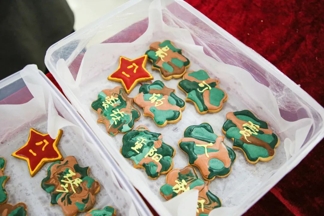 在下村書屋,志愿者們提前布置好手工甜品制作區域,并邀請村居長者、居民共20余人在書屋內開展了一場軍旅元素手工甜品制作體驗,在老師的帶領下,長者與小朋友們共同完成餅底涂色、寫字等互動環節,行動中不僅表達了對長者的濃濃敬意,更通過細致溝通促進了鄰里間的情感交流,增強了居民的歸屬感。