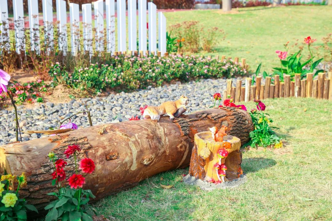 增設18處景觀,種植了200多個開花苗木品種,每隔500米設置一道特色景觀,同時增加了許多擺件、游玩設施(如秋千、彈簧木馬)等。