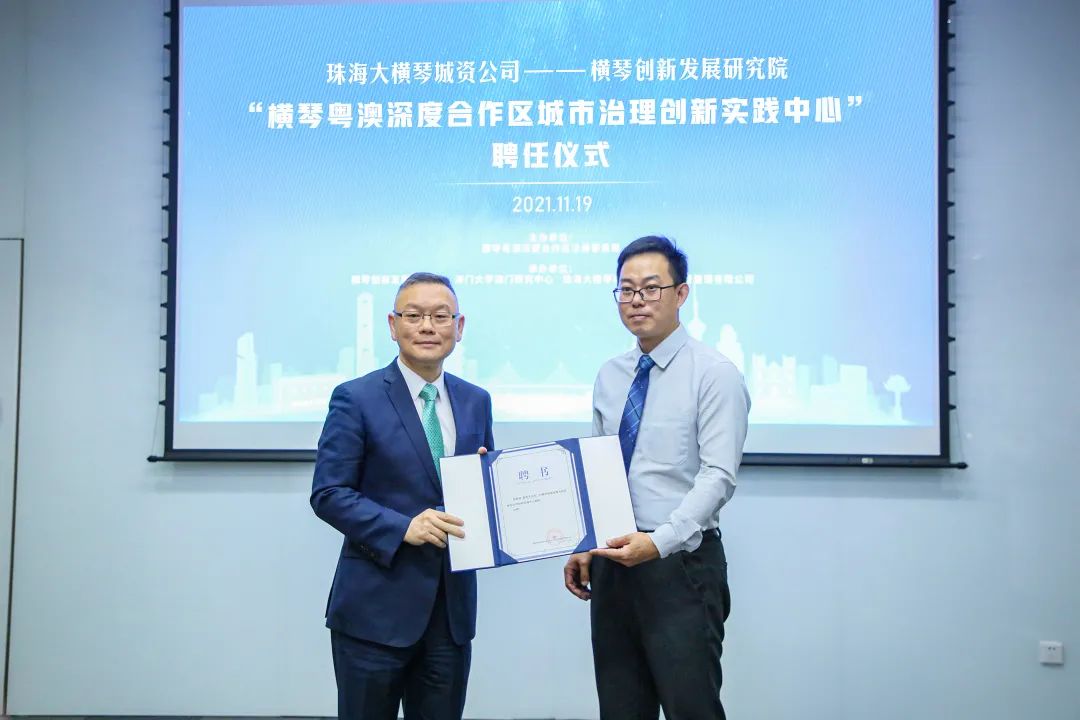 2021年11月19日,大橫琴城資與橫琴創新發展研究院共同成立的“橫琴粵澳深度合作區城市治理創新實踐中心”聘任澳門城市規劃專家為專業顧問,凝聚琴澳城市治理新合力,進一步推動“物業城市”治理模式的創新與完善。