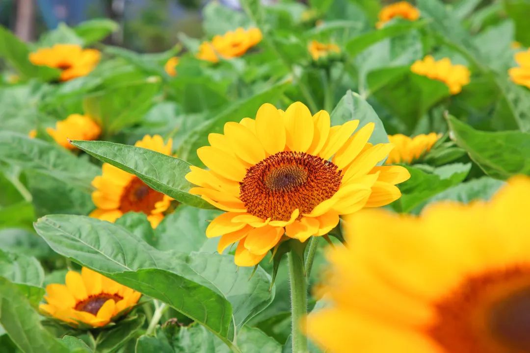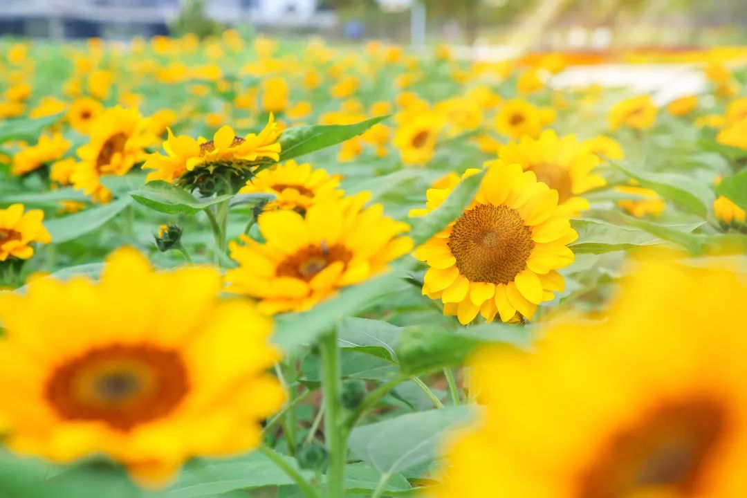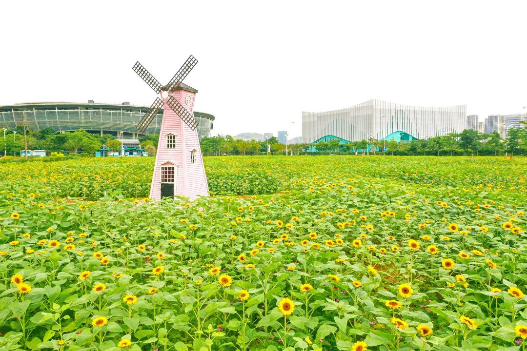 盛放的花朵搭配著藍天、白云,美不勝收,行走在花間的小徑上,你就是那畫中人。