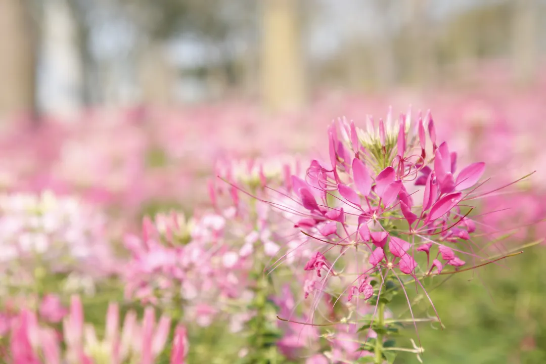 一朵朵格桑花昂首怒放,顯得格外嬌艷和生機勃勃;紫色的馬鞭草悄然綻放,營造了幾分浪漫與夢幻的氣息;粉色的醉蝶花在微風的吹拂下輕輕搖曳,如同蝴蝶翩翩起舞,格外迷人。