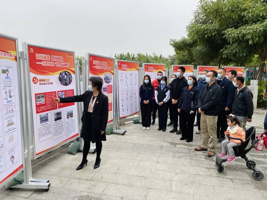 ▲大橫琴城資黨支部“黨史流動課堂”進駐荷塘社區黨委石山村黨支部