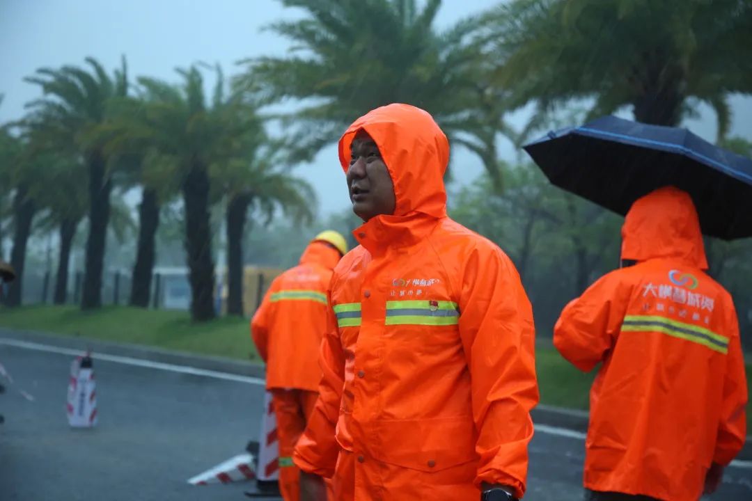 ▲大橫琴城資黨支部黨員、環衛經理李昊鵬在暴雨期間赴一線開展應急搶險工作