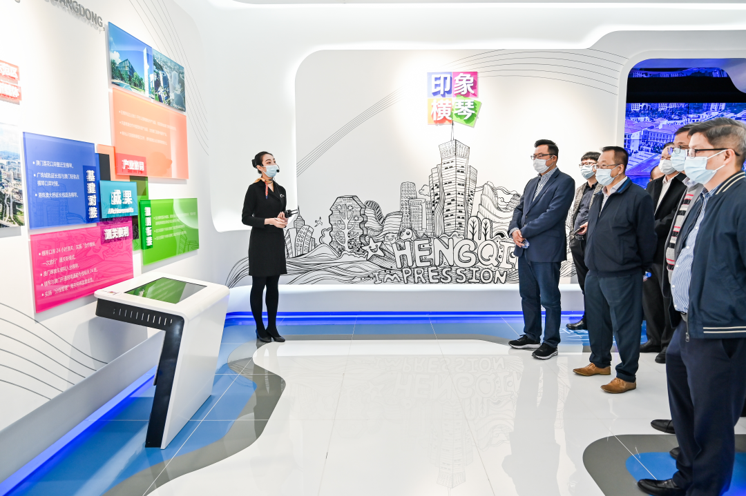 ▲來自澳門的“城市服務體驗官”參觀橫琴規劃展廳,了解橫琴發展及規劃建設情況