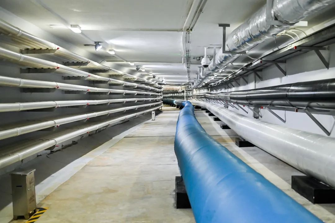 在講解員的帶領下,學生們可詳細了解管廊的建設情況,近距離觀測管廊內(nèi)材質不同、粗細不一、顏色各異的多種管道,探秘地下“長城”。
