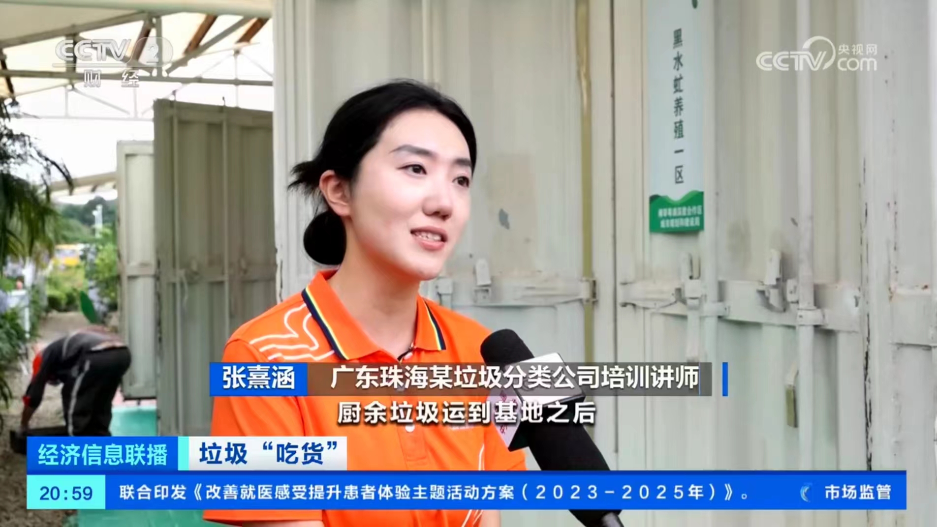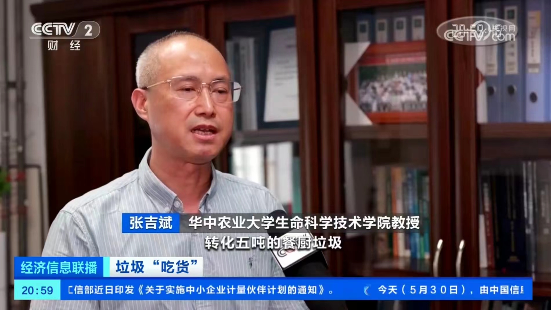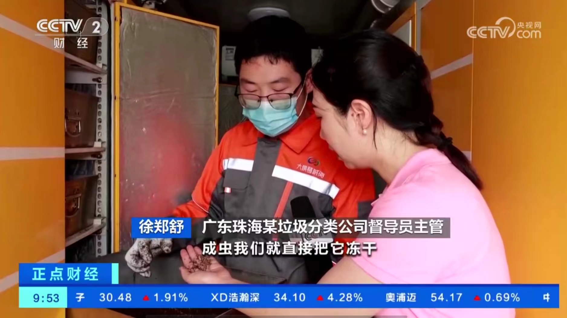 華中農業大學生命科學技術學院教授張吉斌:“轉化5噸的餐廚垃圾,可以產生1噸的鮮蟲,產生大概2噸左右的昆蟲蟲肥,實現零排放,而且把它變廢為寶,可以實現綠色循環的產業鏈。”
