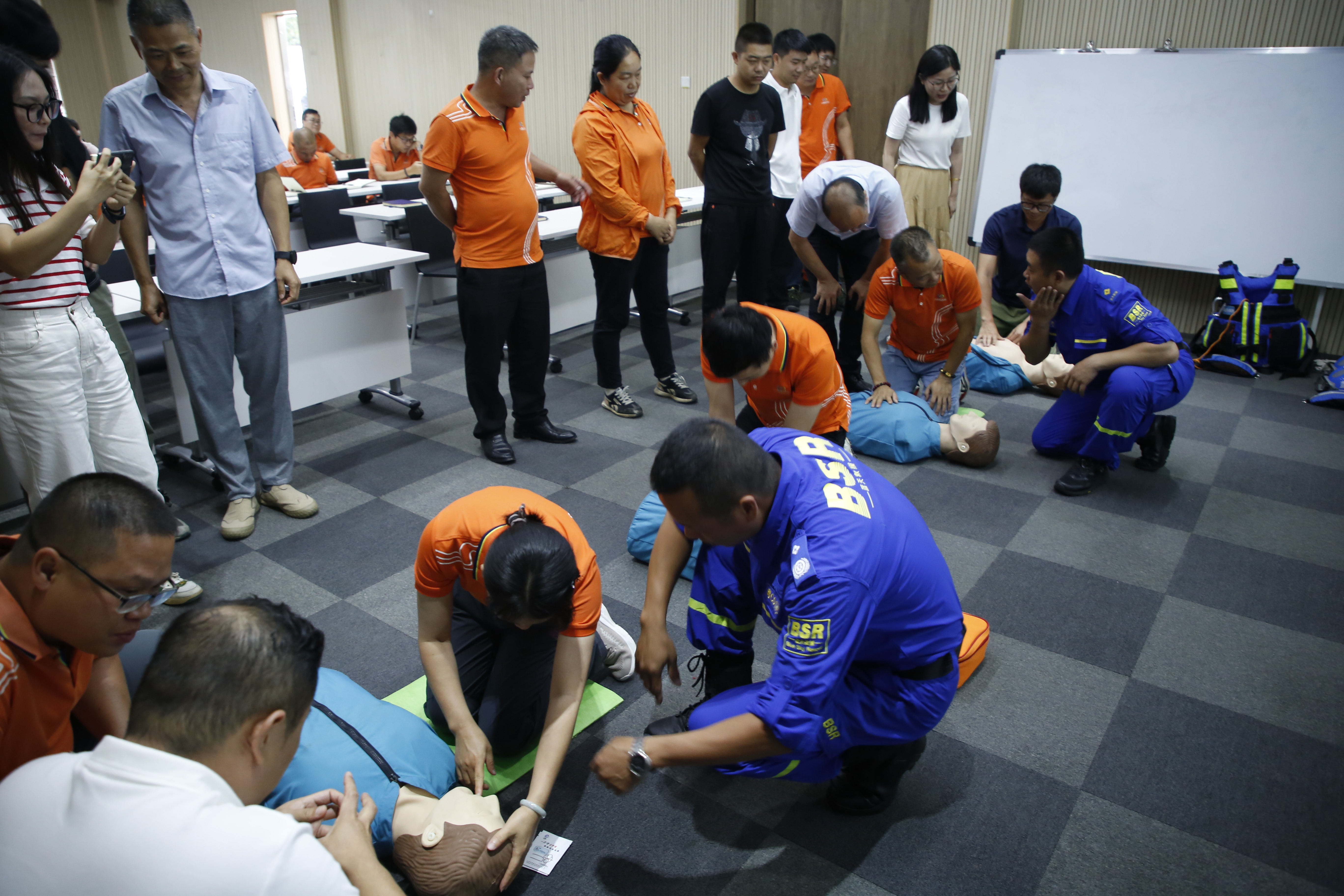 邀請藍天救援隊成員為各部門日常應急處置人員、安全管理人員開展應急救援理論和應急救援設備實操培訓,讓大家深入了解自動體外除顫器(AED)、油鋸等設施在應急處置時的正確使用方法,學習心肺復蘇、防溺水等急救知識,切實提高參訓人員的應急救援能力。