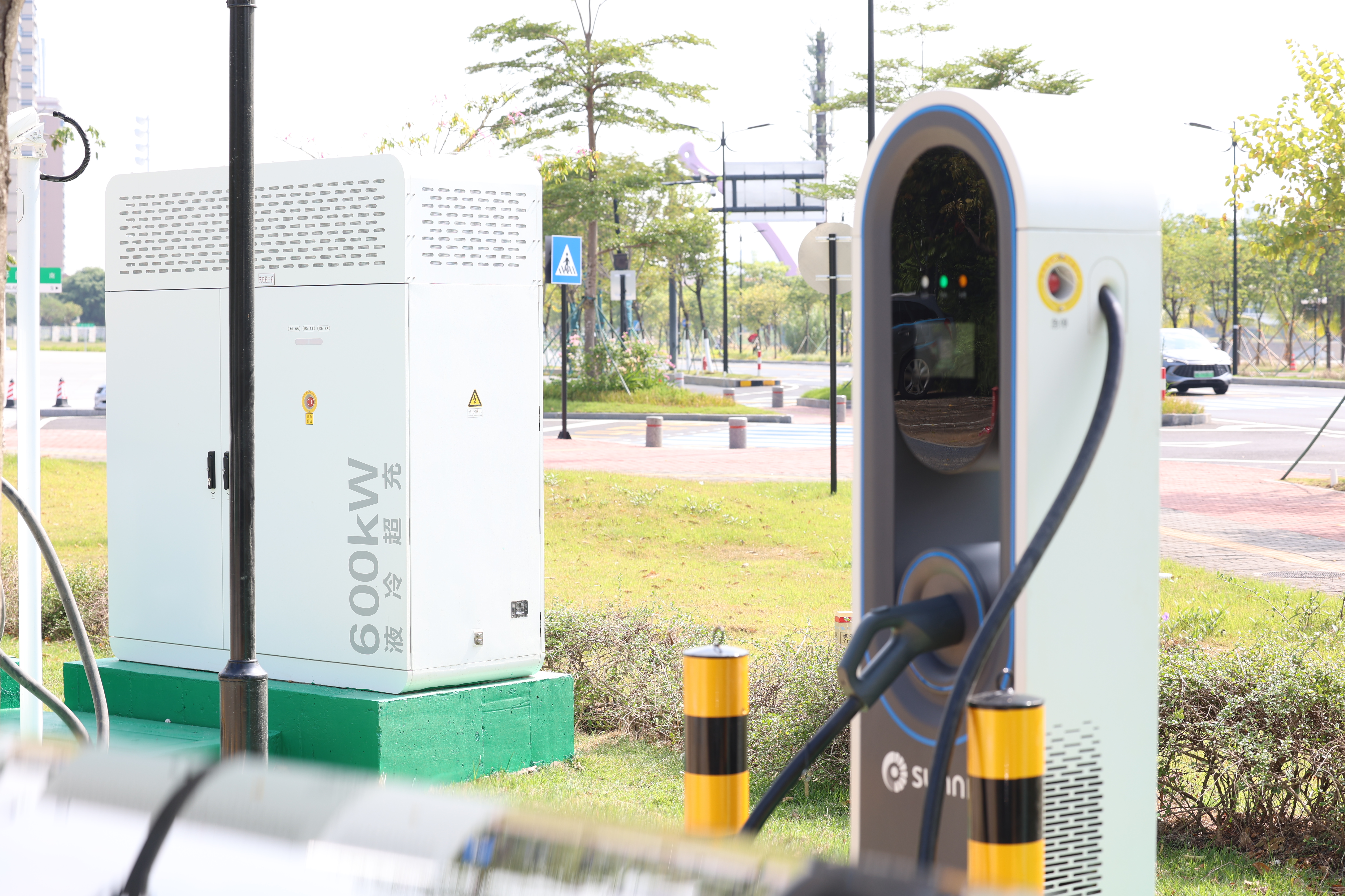 液冷超充樁最大輸出功率高達600kW,最快充電速度達到1秒1公里,5分鐘充電里程可達到200公里。