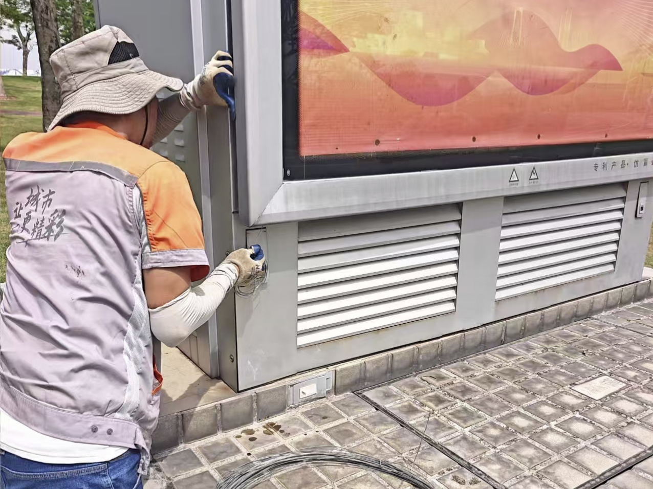 關(guān)閉十字門片區(qū)、天沐河及花海長(zhǎng)廊全線、各公園以及沿海邊區(qū)域的149個(gè)景觀燈及全島260余座公交站燈箱電源,并對(duì)箱體進(jìn)行加固。