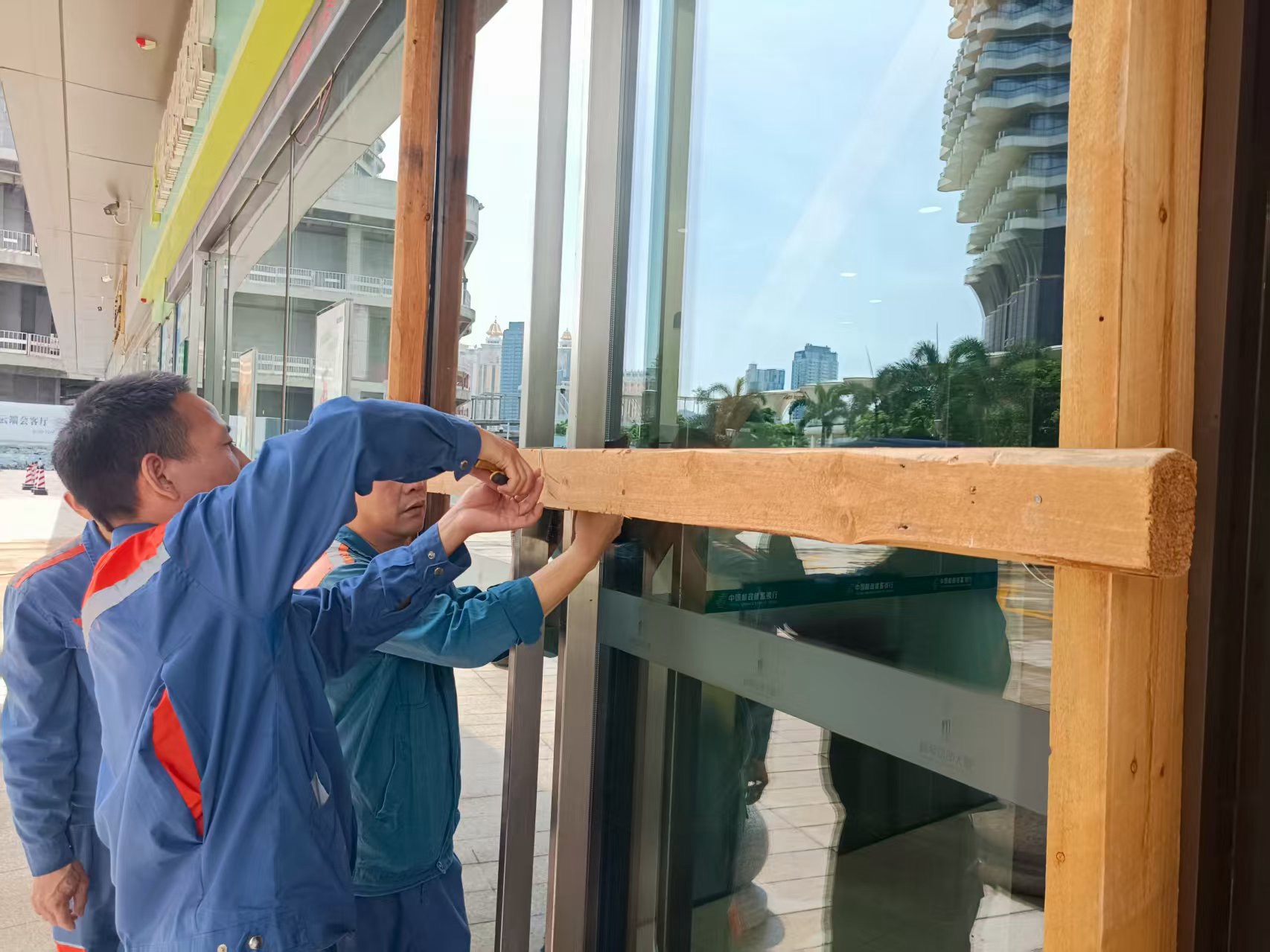對(duì)在管的橫琴總部大廈、新家園小區(qū)、銀鑫花園小區(qū)等物業(yè)項(xiàng)目提前采取防風(fēng)加固措施,各區(qū)域出入口及地勢(shì)低洼處配備沙袋,設(shè)置防水擋板,并做好雨水篦子及下水道排水渠雜物的清理工作。