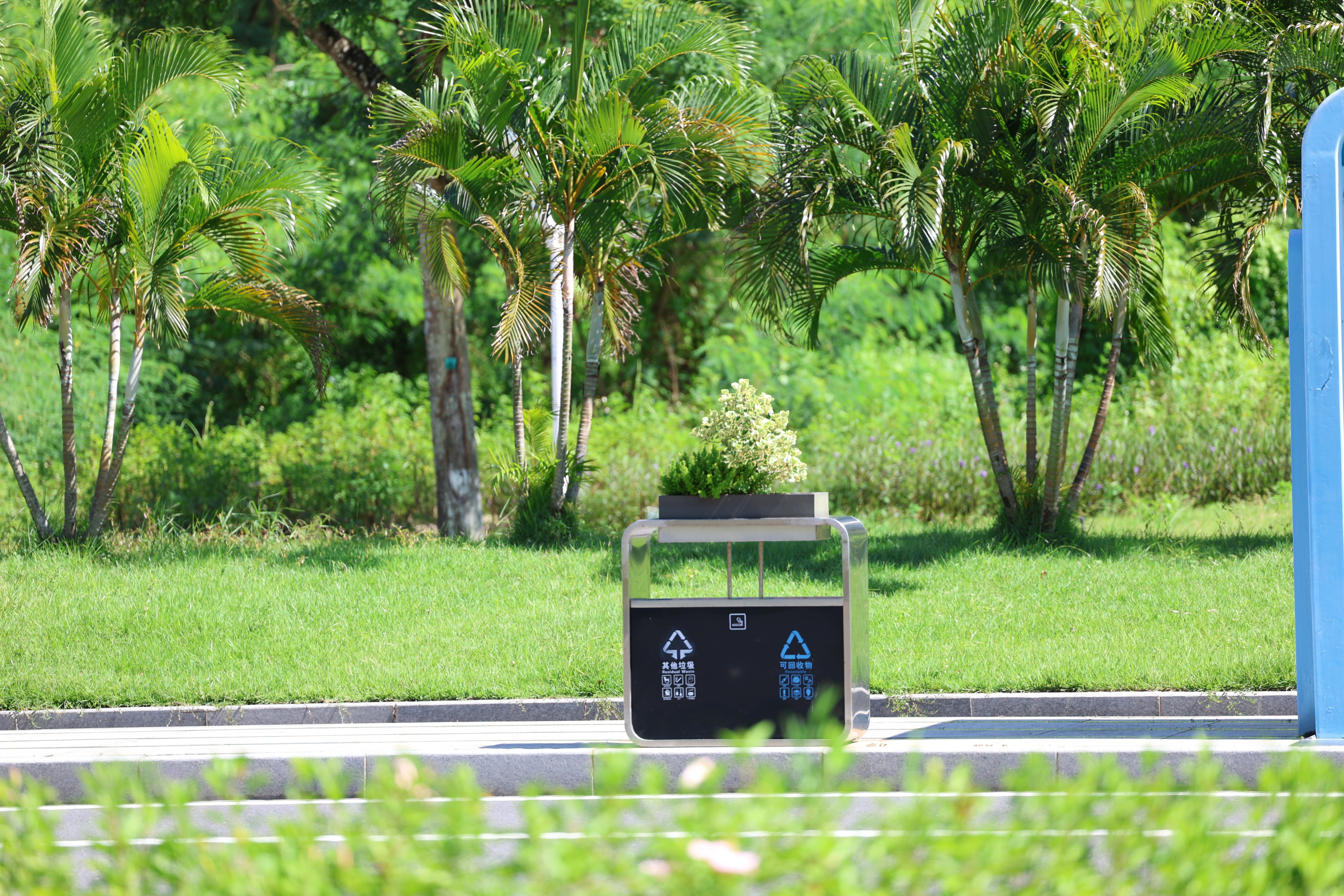 果皮箱上方還配套安裝了造型美觀、色彩協調的花箱,實現功能與美觀的雙重提升,與周邊環境相映成趣。