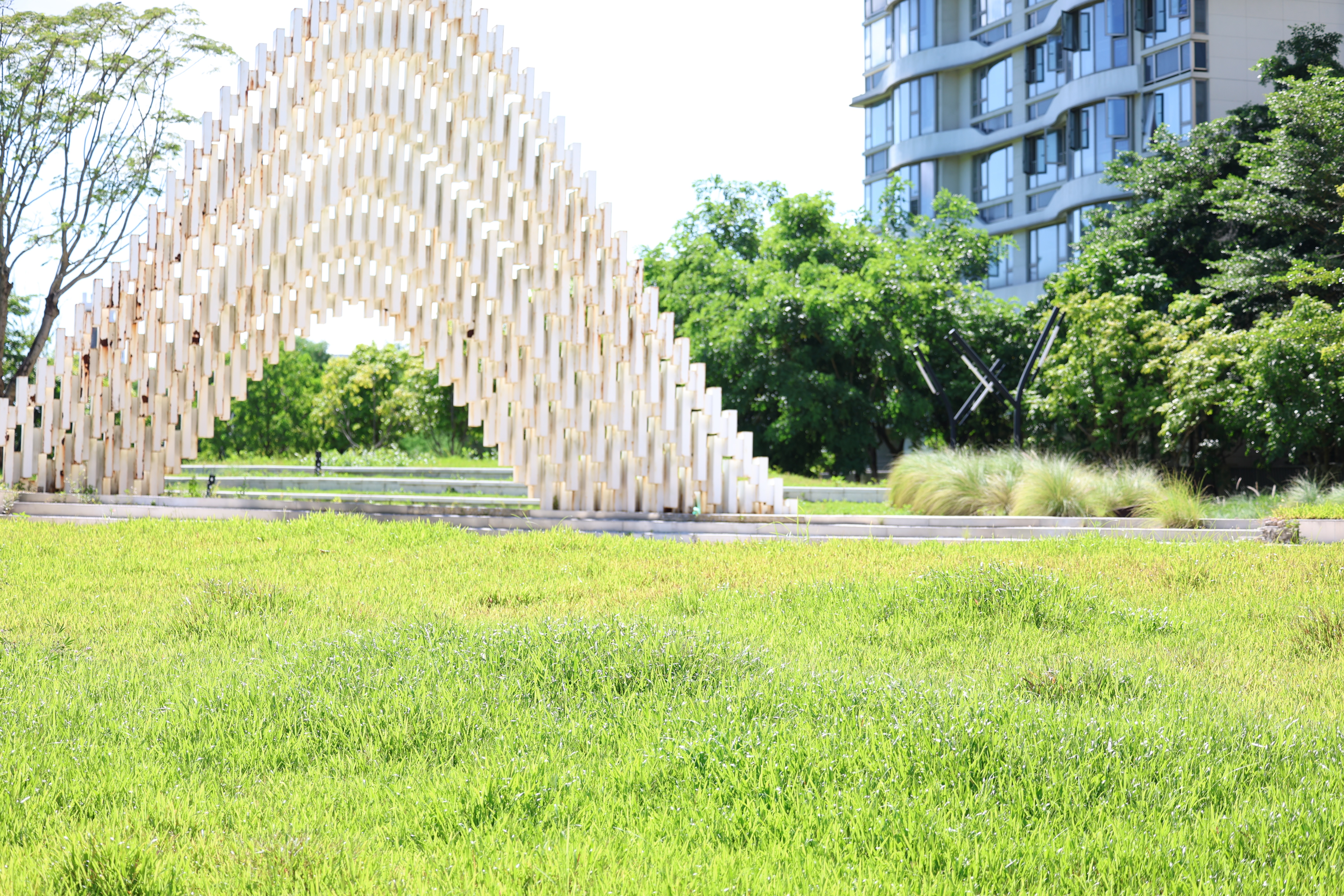 保留部分原有喬木、灌木,精細化養護下層草皮、地被;同時清理老化區域,循環種植美花紅千層球、矮腳黃槐球與翠蘆莉,為道路注入更多生機。