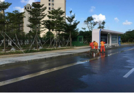 其中,在市政管養方面,全員取消休假,加班加點對路面進行清潔,機械清掃和人工清掃相結合,進行循環地毯式全覆蓋清掃作業;加強巡查檢修力度,確保100%亮燈率,對照明設施進行全面的清潔;對綠化植被進行全面的修剪、補苗、換苗,加大園林綠地管護力度,全方位實施動態保潔。