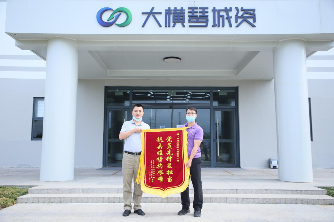 同時(shí),荷塘社區(qū)石山村黨支部還送來錦旗。錦旗上面寫著“抗擊疫情共艱難 黨員先鋒顯擔(dān)當(dāng)”14個(gè)字,對(duì)大橫琴城資所有參與到一線防控的黨員同志的無私付出、無畏抗疫表示最真誠的謝意。