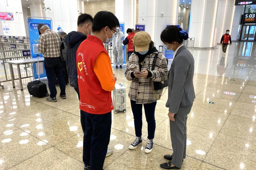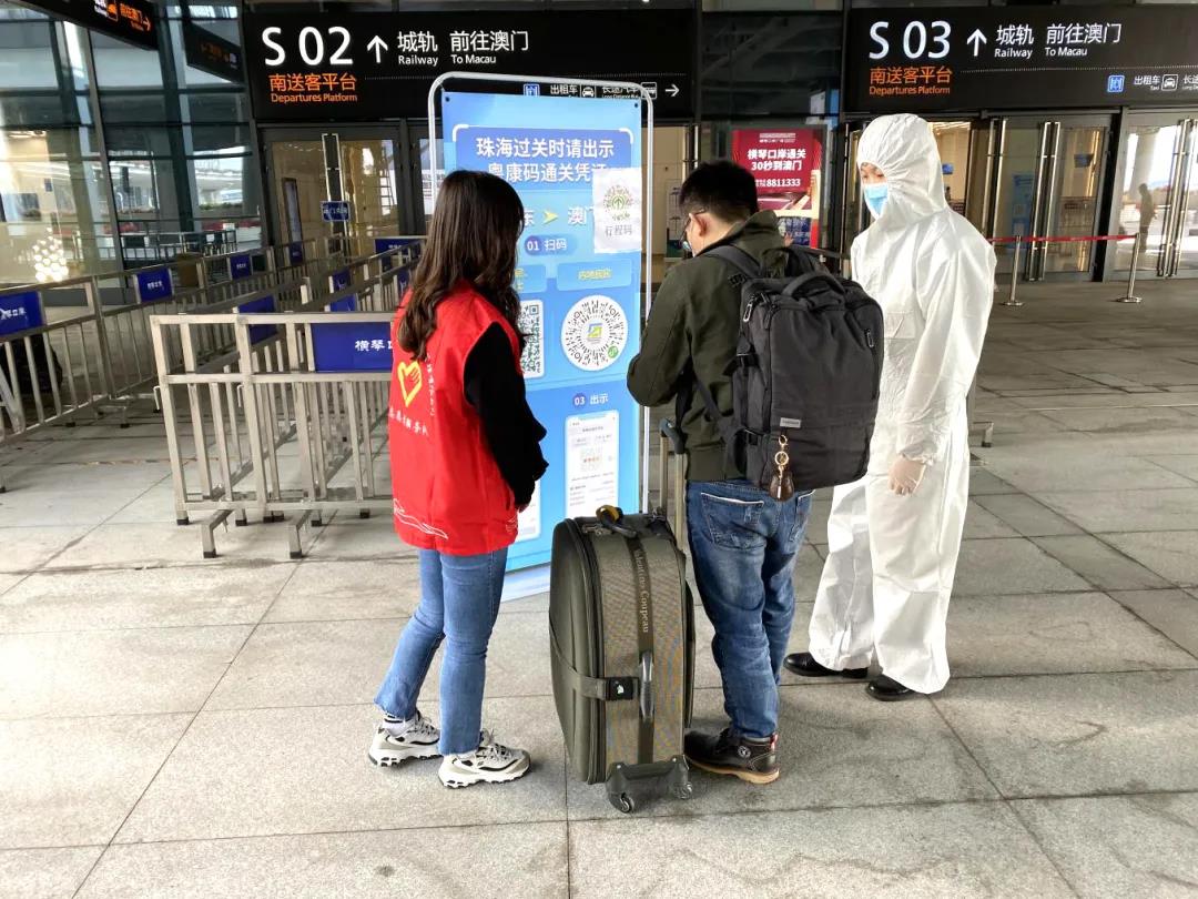 大橫琴管廊公司青年文明號等集體和其他單位團員青年組成的口岸志愿服務隊參與了此次志愿服務。